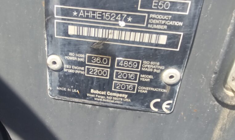 BOBCAT E 50 ΜΟΝΤΕΛΟ 2016 3451 ΩΡΕΣ ΕΓΚΑΤΑΣΤΑΣΗ ΣΦΥΡΑΣ ΕΓΚΑΤΑΣΤΑΣΗ ΑΧΟΙΒΑΔΑΣ ΠΟΔΑΡΙΚΑ 70% CE 2 ΚΟΥΒΑΔΕΣ